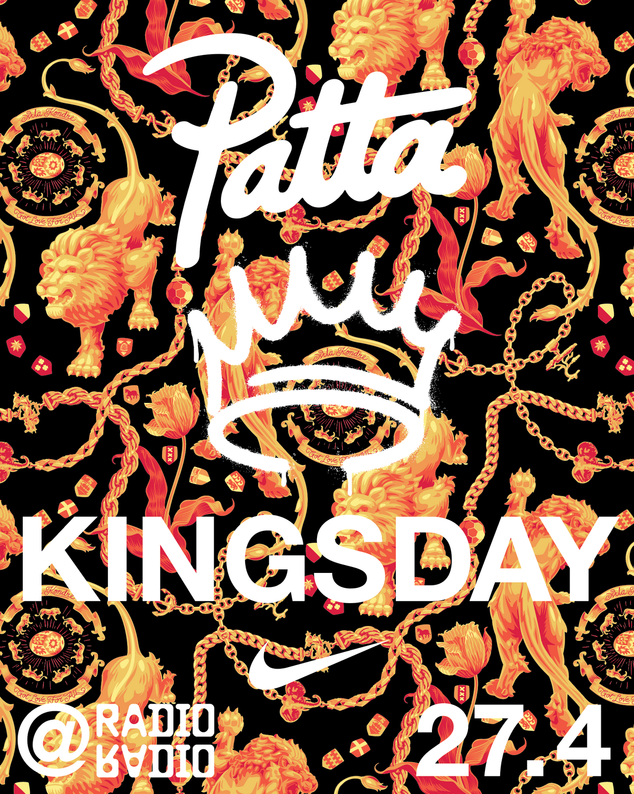 On Monday, April 27th, from 12:00 until 20:00, Patta will be hosting an outdoor Kingsday event at Radio Radio, Amsterdam. This will be open to the public and is free to enter. Due to limited space we suggest arriving early to avoid disappointment.